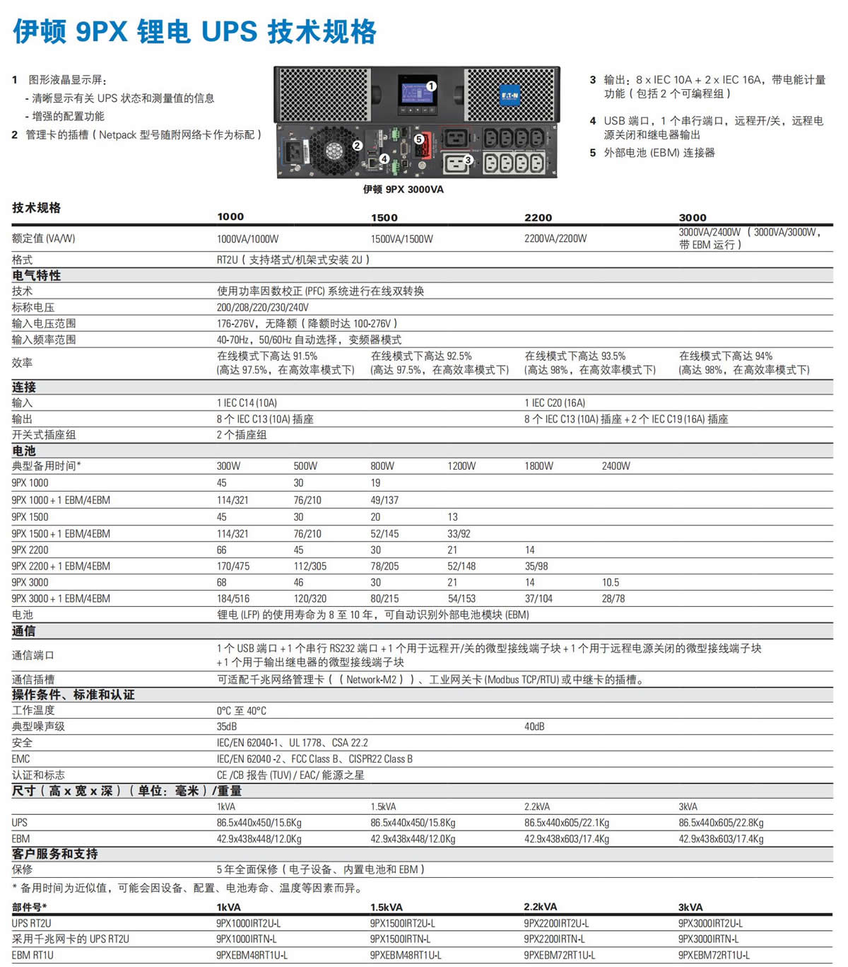 • 型       号:Eaton 9PX EBM 48V RT1U Li-Ion