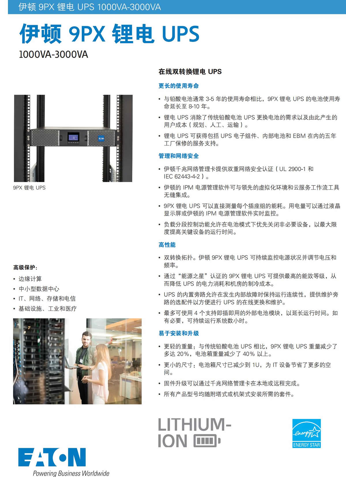 伊顿锂电池UPS电源9PX1500IRT2U-L