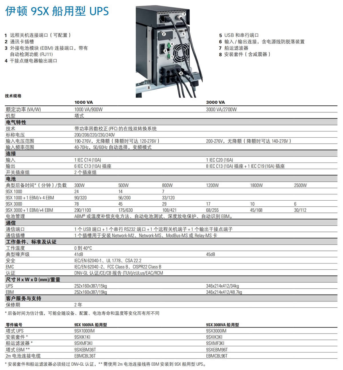 伊顿(Eaton)9SX 1000VA 船用型UPS