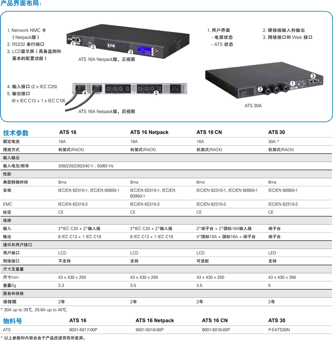 伊顿(Eaton)ATS 30A (标配网络卡