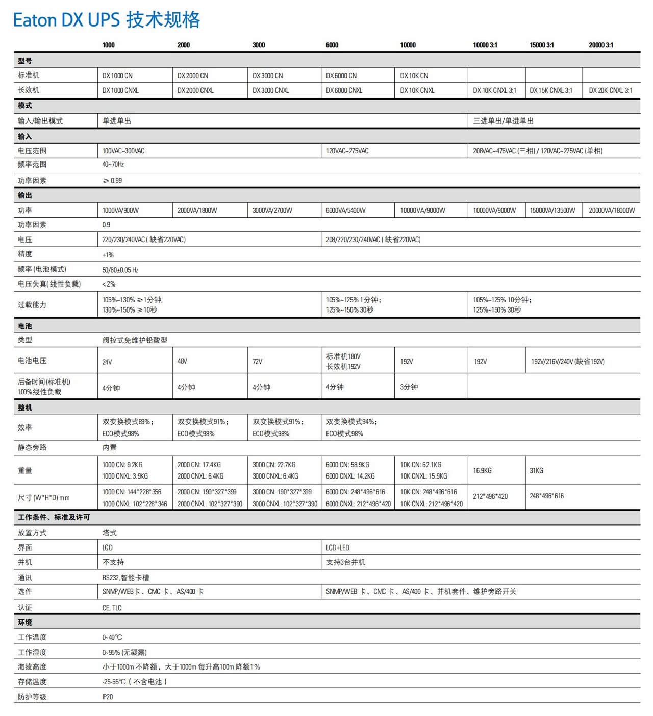 输入电压范围: (标称220/230/240)110-296V 输出电压范围: (标称220/230/240)220V 输出频率范围: 50/60Hz |